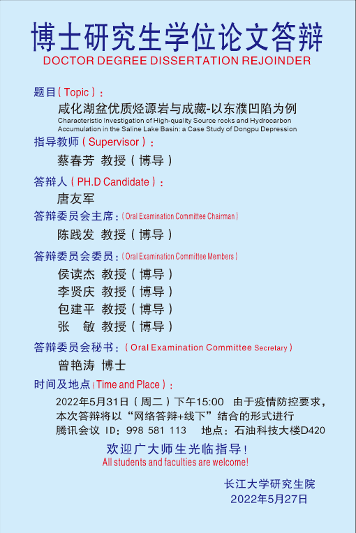 上一篇:2022年6月博士研究生畢業(yè)答辯公告(2)