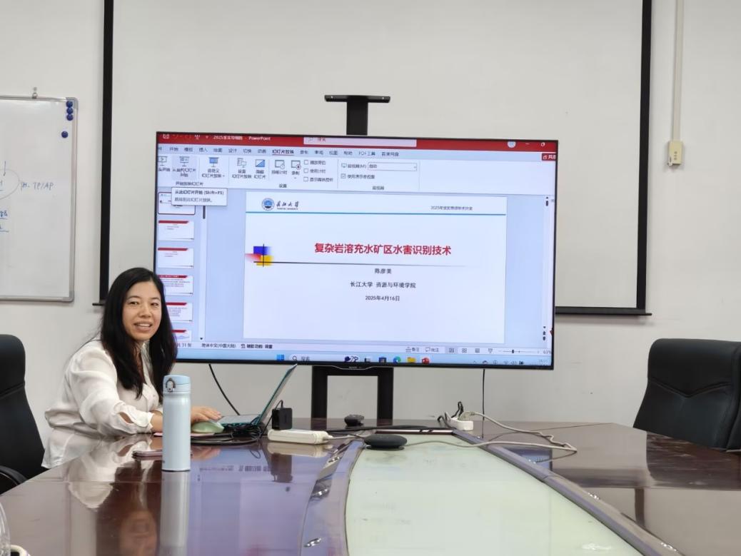 之后,陳彥美副教授以“復(fù)雜巖溶充水礦區(qū)水害識(shí)別技術(shù)”為主題介紹了研究團(tuán)隊(duì)針對(duì)多個(gè)典型巖溶充水礦區(qū)開(kāi)展的系列防治水工作。她從復(fù)雜巖溶充水礦區(qū)的概念入手,為同學(xué)們介紹了巖溶充水礦區(qū)水文地質(zhì)條件復(fù)雜程度的劃分方法。利用福建馬坑鐵礦、荊襄磷礦大峪口礦段、蓮花山礦段三個(gè)典型事例,深入介紹礦區(qū)充水水源及充水途徑的識(shí)別方法以及礦井水防治手段,深化了同學(xué)們對(duì)于巖溶充水礦區(qū)水害的認(rèn)識(shí)。