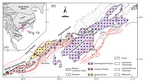 近期,我院青年教師聶虎與來自意大利帕多瓦大學的Omar Bartoli教授、加拿大皇后大學的Spencer 教授以及我院夏小平教授、李文霞老師等國內外學者一起合作一起,針對我國華南大容山-十萬大山地區(qū)出露的一套典型的高溫/超高溫S型花崗巖(圖1),重點分析了磷灰石中的氟、氯、水含量及氫氧同位素特征以探討其巖石成因及大地構造過程。