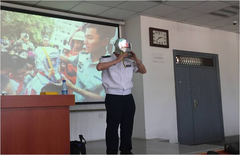 理論知識講解完畢后,謝教官現(xiàn)場展示了防毒面具佩戴方法和濕毛巾折疊方法。在會(huì)議的最后組織師生進(jìn)行一次逃生大演練并進(jìn)行點(diǎn)評。最后謝教官語重心長和大家分享了心得“心中多一些責(zé)任,事后少一些悔恨“在一片掌聲中結(jié)束了本次宣講。