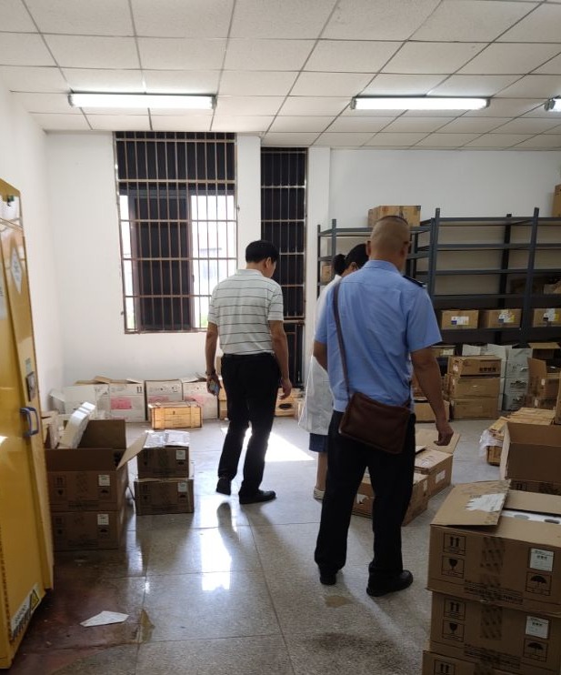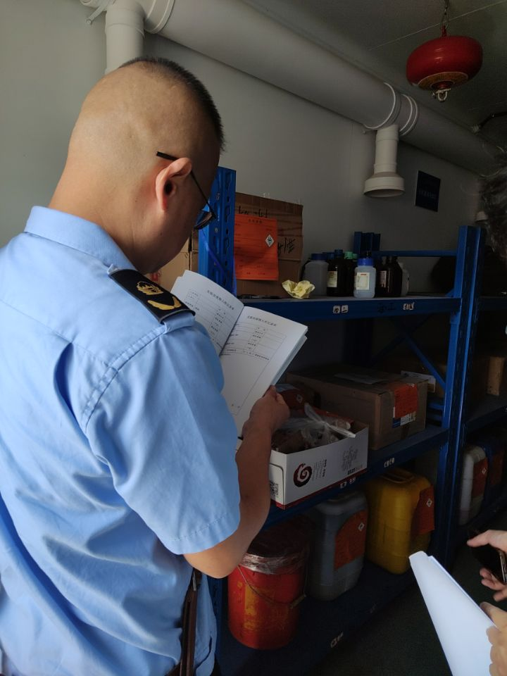 9月26日上午,蔡甸區(qū)環(huán)保部門檢查工作組蒞臨我院開展實驗室危險化學品安全檢查工作。武漢校區(qū)安全與后勤保障處處長鄧平,資環(huán)學院實驗室相關(guān)人員參加檢查活動。檢查查看了危化品存儲間、廢物處置間。