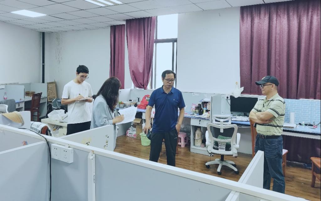 此次檢查的目的在于查找問題,消除安全隱患。肖書記首先對辦公場所的消防通道是否通暢、樓道及安全通道是否堆放易燃易爆等物品、安全出口和應(yīng)急照明是否配備齊全、房間內(nèi)是否違規(guī)使用電燒水器等大功率電器幾個(gè)方面進(jìn)行了詳細(xì)檢查,在學(xué)院研究生公共辦公室,肖書記重點(diǎn)強(qiáng)調(diào)了學(xué)生用電安全、學(xué)習(xí)環(huán)境保持,要求安全人員普及安全知識,深化學(xué)生安全意識,提升學(xué)生主動(dòng)識別安全隱患的能力。