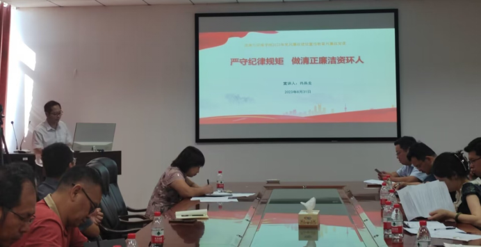 (通訊員 李春花)資環(huán)學(xué)院黨委深入開展“學(xué)習(xí)貫徹習(xí)近平新時(shí)代中國(guó)特色社會(huì)主義思想”主題教育活動(dòng),結(jié)合學(xué)院黨風(fēng)廉政建設(shè)宣傳教育月活動(dòng),8月31日下午,學(xué)院黨委書記肖品龍?jiān)谑涂萍即髽?/span>A305為全院教職工講授廉政黨課。