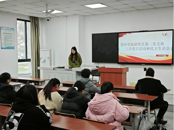 (通訊員 李寧昱)2025年3月14日,資源與環(huán)境學院研究生第二黨支部于武樓A101開展三月支部主題黨日活動。本次會議由肖連主持,黨支部書記黃鵬老師及全體支部成員參會。