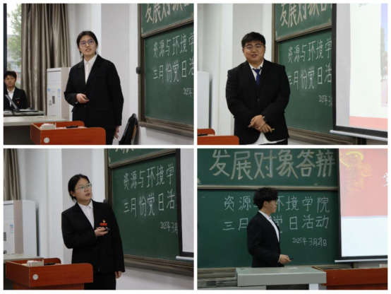 19名答辯對象依次上臺,圍繞個人介紹、學(xué)習(xí)工作情況、入黨動機、自身不足及改進措施等多個方面進行匯報。冷松杉同學(xué)講述自己作為班級的團支書,認真履行工作責(zé)任和義務(wù),每月按時召開班級團會,積極組織團日活動,帶領(lǐng)同學(xué)們深入學(xué)習(xí)理解黨的思想,在班級營造學(xué)黨敬黨愛黨的良好氛圍。魏嘉豪同學(xué)結(jié)合實際,深刻闡釋了對黨的認識和入黨動機,并認真反思了自身存在的不足,提出具體舉措補短板,落實施,以實際行動踐行責(zé)任與擔(dān)當(dāng)。