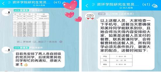 (通訊員 黃謙 圖/文)疫情就是命令,防控就是責(zé)任。當(dāng)前國際疫情仍然嚴(yán)重,近期國內(nèi)多個(gè)省份出現(xiàn)新增病例,為了進(jìn)一步做好學(xué)生日常管理工作,強(qiáng)化常態(tài)化疫情防控工作,保障廣大學(xué)生的健康安全,長(zhǎng)江大學(xué)資源與環(huán)境學(xué)院研究生黨支部全體黨員都積極參與到日常防疫工作中,做好每日體溫打卡、進(jìn)出校園自覺佩戴好口罩、非必要不外出等。近日學(xué)院有兩名研究生,因科研出差途徑疫情中高風(fēng)險(xiǎn)地區(qū),返校前積極配合學(xué)院疫情防控工作,提前做好相關(guān)核酸檢測(cè)。學(xué)生返校后,學(xué)院研究生輔導(dǎo)員嚴(yán)麗萍老師第一時(shí)間號(hào)召研究生黨員同志做好返校人員隔離工作,安排黨員同志幫助兩名隔離的同學(xué)搬宿舍,做好隔離工作。面對(duì)疫情防控,學(xué)院研究生黨員同志們積極參與其中,司錦同志帶領(lǐng)黃謙、鄧美玲等黨員同志協(xié)助大家一起把此次疫情隔離工作做好,每天都安排有相關(guān)黨員同志給隔離的同學(xué)送餐、送“溫暖”、進(jìn)行日常體溫檢測(cè),并做好疫情隔離期間的工作反饋,研究生黨支部盡一切努力為隔離的兩名學(xué)生服務(wù),做到隨叫隨到,滿足隔離同學(xué)的日常需求,關(guān)心學(xué)生的身心健康。