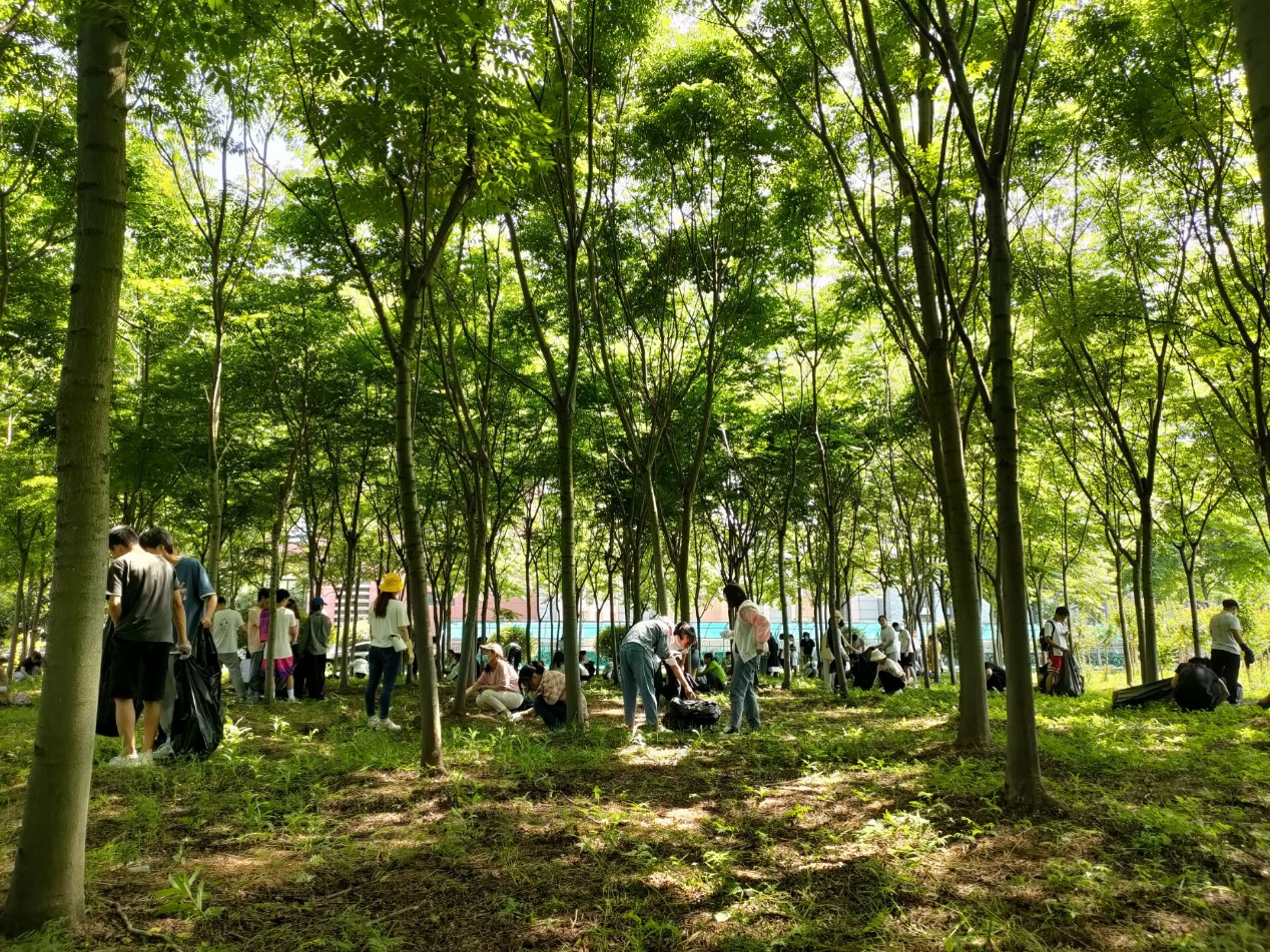 在聽了李春花老師對大家的叮囑之后,同學(xué)們一起前往了資環(huán)學(xué)院下沉責(zé)任區(qū),展開了清理責(zé)任區(qū)雜草、垃圾的工作。為了更高效更合理地處理責(zé)任區(qū)的雜草與垃圾,同學(xué)們自行分成了一些小組,在李春花老師的帶領(lǐng)下,以小組為單位開展活動,每個小組的成員也有條不紊地進(jìn)行著自己的任務(wù)。有的同學(xué)負(fù)責(zé)拔除雜草,有的同學(xué)負(fù)責(zé)將散落的雜草清理到垃圾袋里,還有的同學(xué)負(fù)責(zé)為其他同學(xué)分發(fā)手套等工具。經(jīng)過兩個小時的努力,明顯可以看到負(fù)責(zé)區(qū)域變得干凈整潔了,大家也紛紛對自己的勞動成果表示滿意。