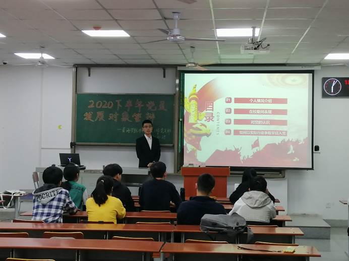(通訊員 呂秀迪/圖 岑暢/文)為進一步做好資源與環(huán)境學(xué)院黨員發(fā)展工作,使黨組織繼續(xù)吸收優(yōu)秀的發(fā)展對象,壯大黨的隊伍。資環(huán)學(xué)院于2020年10月14日晚6點,在武教B207舉行了2020年下半年黨員發(fā)展對象答辯。本次答辯由資環(huán)學(xué)院本科學(xué)生工作黨支部副書記師紅杰主持,黨支部書記李春花、9名黨員以及11名入黨積極分子參加。