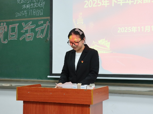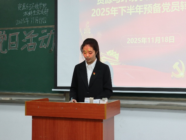 (通訊員孫文靜) 2025年11月18日下午6點, 學院本科生黨支部于武教A106舉行2025年下半年預(yù)備黨員接收暨轉(zhuǎn)正大會,學工辦主任李春花老師、學生黨員、發(fā)展對象參會。 大會第一項,接收預(yù)備黨員。3名發(fā)展對象依次上臺向黨組織匯報入黨動機、成長收獲、未來發(fā)展及需要向黨組織說明的問題。發(fā)展對象入黨介紹人對發(fā)展對象的情況加以說明,并對其能否入黨表明意見。經(jīng)支部討論和無記名投票表決,同意接收李燕麗等3名發(fā)展對象為中共預(yù)備黨員。 大會第二項,預(yù)備黨員轉(zhuǎn)正。申請轉(zhuǎn)正的4位預(yù)備黨員依次上臺,向黨組織匯報了預(yù)備考察期學習、工作、針對自身不足改進情況,深刻闡述了對黨的認識、入黨動機以及個人成長與進步。經(jīng)支部大會討論和無記名投票表決,同意答淑涵等4名同志按期轉(zhuǎn)為中共正式黨員。 此次支部大會的召開,為黨組織注入了新鮮血液,壯大了黨員隊伍。李春花老師在總結(jié)講話中強調(diào),全體黨員要時刻牢記入黨初心與動機,將不足與批評化為動力,不斷加強理論學習,在學習、工作和生活中發(fā)揮黨員的先鋒模范作用,為學院的發(fā)展和黨的事業(yè)貢獻自己的力量。 審核(李春花)