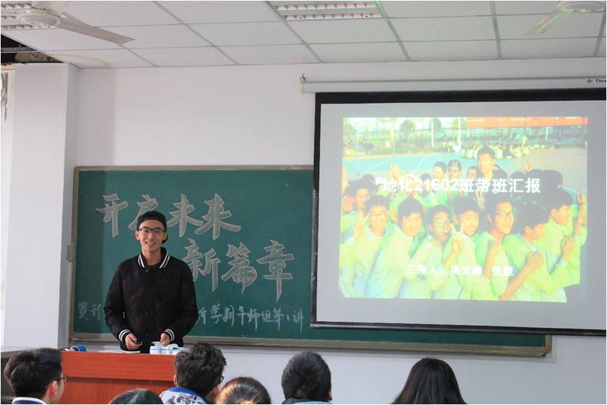 匯報伊始,劉娥老師為支部成員們做了題為:“以優(yōu)為范,引領(lǐng)成長”的導(dǎo)師組特色工作匯報。劉娥老師從“項目簡介”、“夯實基底”、“多向發(fā)展”以及“一樹百獲”四個方面進(jìn)行了講解,老師簡潔生動地講解讓黨支部成員對“導(dǎo)師”這個詞有了更為深刻的理解。隨后,大一年級四個班的班導(dǎo)輪流上臺做詳細(xì)的工作匯報,講述了一學(xué)期帶班工作的酸甜苦辣,掀起了本次活動的高潮。水文21602班的班導(dǎo)劉天勇用“尺瑜藏寸瑕”總結(jié)自己的帶班經(jīng)歷,他講道:“雖然已經(jīng)用心陪伴大家,但仍然有遺憾和不完美的地方,這學(xué)期會更加努力。”地化21602班班導(dǎo)張婕在匯報結(jié)尾引用《傅雷家書》中的一段話:“待人要謙虛,做事要嚴(yán)謹(jǐn),禮儀要得體”來勉勵支部成員。講解在一陣掌聲中愉快地結(jié)束了。