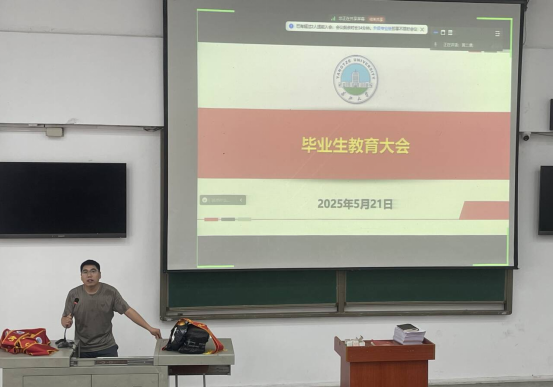(通訊員 黃鵬)為切實做好畢業(yè)生離校教育工作,確保2025屆畢業(yè)生安全、文明、有序離校,5月21日,我院組織召開了2025屆畢業(yè)生離校教育大會。會議由學(xué)院輔導(dǎo)員李春花老師和黃鵬老師主講,全體2025屆畢業(yè)生參會。