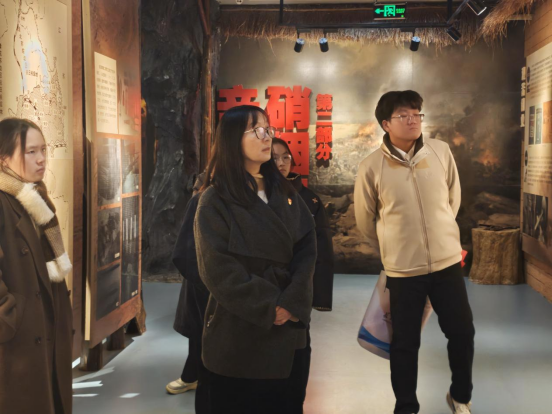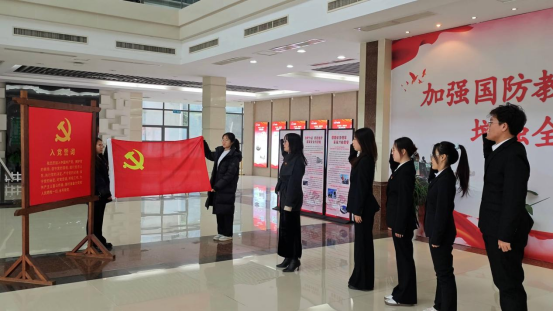 活動(dòng)中,講解員以詳實(shí)的史料為線索,系統(tǒng)梳理了從革命戰(zhàn)爭年代到和平建設(shè)時(shí)期我國國防教育的發(fā)展脈絡(luò)。同志們跟隨講解,仿佛重回那段歲月,深切體會(huì)到在物資匱乏、技術(shù)落后的條件下,國防事業(yè)從無到有、由弱變強(qiáng)的艱辛與偉大。在吳運(yùn)鐸烈士事跡展示區(qū),大家久久駐足,深入了解這位投身革命、為國奉獻(xiàn)的兵工英雄,感悟革命先輩忠誠于黨、不畏艱險(xiǎn)的崇高精神。在李春花老師的帶領(lǐng)下,全體同志面向黨旗莊嚴(yán)宣誓,鏗鏘誓言回蕩其間,既是對革命先輩的深切緬懷,更是對初心使命的鄭重承諾,充分彰顯了青年學(xué)子矢志不渝跟黨走的堅(jiān)定信念。