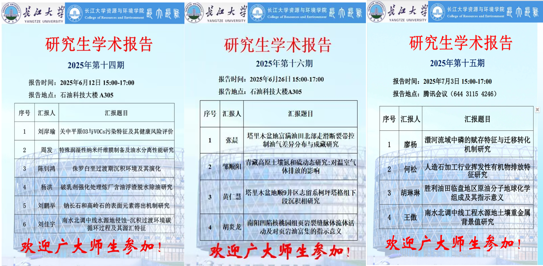 (通訊員 黃鵬)為深入貫徹研究生教育內(nèi)涵式發(fā)展要求,強(qiáng)化學(xué)術(shù)共同體建設(shè),營(yíng)造“深耕專業(yè)、開(kāi)放交流”的濃厚研學(xué)氛圍,長(zhǎng)江大學(xué)資源與環(huán)境學(xué)院精心打造的“一院一品”特色品牌活動(dòng)——“資環(huán)大講堂”研究生學(xué)術(shù)匯報(bào)系列活動(dòng)已實(shí)現(xiàn)常態(tài)化、制度化運(yùn)行。該活動(dòng)以“每周一講”的頻率,為研究生搭建了一個(gè)高水準(zhǔn)、常態(tài)化的學(xué)術(shù)交流與能力錘煉平臺(tái)。