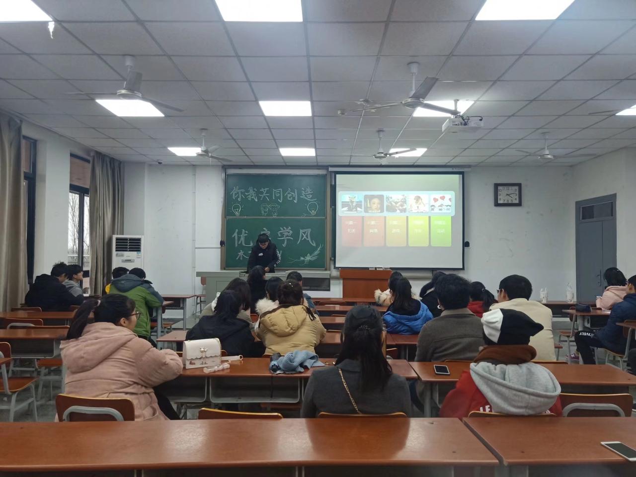 (通訊員 李婉婷 圖/文)良好學(xué)風(fēng)形成的根本是大學(xué)生的學(xué)習(xí)動(dòng)力和成才意識(shí)。為激勵(lì)大學(xué)生的學(xué)習(xí)熱情,強(qiáng)化成才意識(shí),使全體同學(xué)都能夠刻苦學(xué)習(xí),努力拼搏,促進(jìn)良好學(xué)風(fēng)形成。資環(huán)學(xué)院于2019年10月8日晚6:00在武培A103進(jìn)行優(yōu)良學(xué)風(fēng)建設(shè)主題班會(huì)。本次班會(huì)由資環(huán)學(xué)院學(xué)生輔導(dǎo)員李春花主持。參與本次活動(dòng)有各個(gè)班級(jí)的學(xué)生代表。