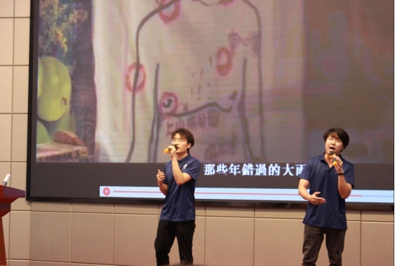 畢業(yè)生代表蔣康和黃笑天的合唱《那些年》將大會氣氛推向高潮。