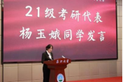 研究生代表劉于民、20級考研杰出代表劉毅、21級考研代表?xiàng)钣穸鸱謩e從自身角度出發(fā),指出制定切實(shí)可行的考研計(jì)劃是重要基石,腳踏實(shí)地以及保持積極向上的心態(tài)是制勝法寶。