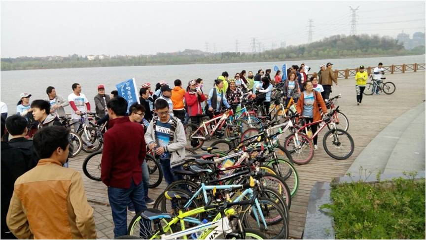 騎行過(guò)程中,從水務(wù)局——簡(jiǎn)樸寨——新一中——老一中——區(qū)委大院——后官湖——多福山莊——京珠紅光村——水務(wù)局,整段路程大家都熱情高漲,所有水協(xié)成員先領(lǐng)略了蔡甸街區(qū)內(nèi)部的人文景象,然后陶醉在學(xué)校周邊的美好湖光山色中,并且受到致力于水務(wù)工作的前輩們無(wú)限正能量的激勵(lì),他們有組織、有紀(jì)律的出行團(tuán)隊(duì)讓我們水協(xié)成員深受感觸,他們?yōu)樗畡?wù)、為環(huán)境的努力和付出更值我們水文人學(xué)習(xí)和發(fā)揚(yáng)。上午九點(diǎn),所有參與活動(dòng)的人員在后官湖小公園處再次集體合影為此次極具宣傳意義的騎行活動(dòng)再添讓人難以忘懷的一筆。