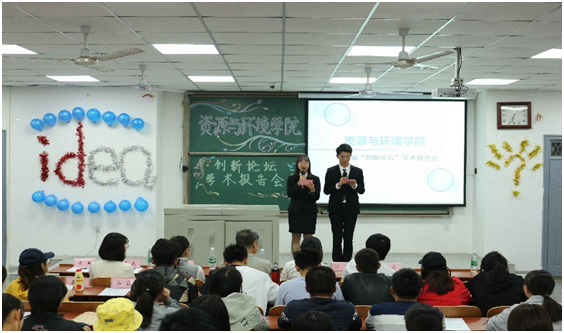 (通訊員蔡依玲 圖/范達(dá)福 文)為“弘揚(yáng)學(xué)術(shù),激勵(lì)創(chuàng)新”,展現(xiàn)資環(huán)學(xué)院創(chuàng)新風(fēng)采,激勵(lì)資環(huán)學(xué)子創(chuàng)業(yè)熱情,由資環(huán)學(xué)院團(tuán)委學(xué)生會(huì)學(xué)習(xí)部組織策劃的資環(huán)學(xué)院創(chuàng)新論壇學(xué)術(shù)報(bào)告會(huì)于10月12日晚18:30在武培B108進(jìn)行。此次報(bào)告會(huì)由劉于民、姜曉萱擔(dān)任主持,資環(huán)學(xué)院黨委書(shū)記朱思源,副院長(zhǎng)趙紅靜等出席此次大會(huì)。
