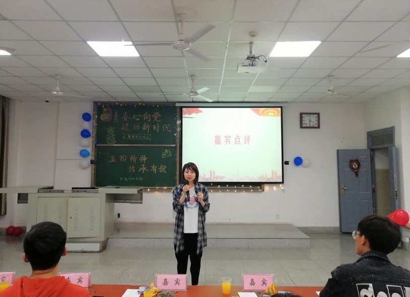 再者,朱吉華、陳倩倩、李廣鑫、賀武明四位同學(xué)帶來了詩朗誦《青春萬歲》并帶領(lǐng)全體人員共唱團歌《光榮啊!中國共青團》,本次活動在振奮人心的音樂聲中接近尾聲。最后,劉娥老師對本次活動進行點評,對于傳承并發(fā)揚五四精神的正能量給予了肯定。