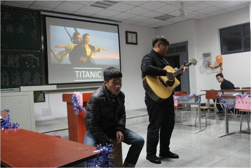 會上,同學(xué)王翰和趙鑫為大家獻上有趣的情景劇《Jack and Rose 》,Jack與Rose的深情和滑稽的語言大大地活躍了現(xiàn)場氣氛。本次班會模仿綜藝節(jié)目《火星情報局》的形式,改建了二班情報局,由班長林航擔任局長,團支書閆豐擔任副局長,還有張新智,楊盼等7名班級成員扮演高級特工,共同來完成本次“二班情報局”的提案。隨后,班長林航提出了四個案例:雙十一該不該瘋狂購物?大學(xué)生應(yīng)不應(yīng)該貸款?大學(xué)生如何合理規(guī)劃開支?大學(xué)生如何提高防詐騙意識?案例期間,趙鑫上臺演唱自編歌曲《學(xué)會理財你更美》,魏澤申則奉上吉他一曲,兩位同學(xué)的精彩表演都博得了大家熱烈的掌聲,將整次班推向高潮。