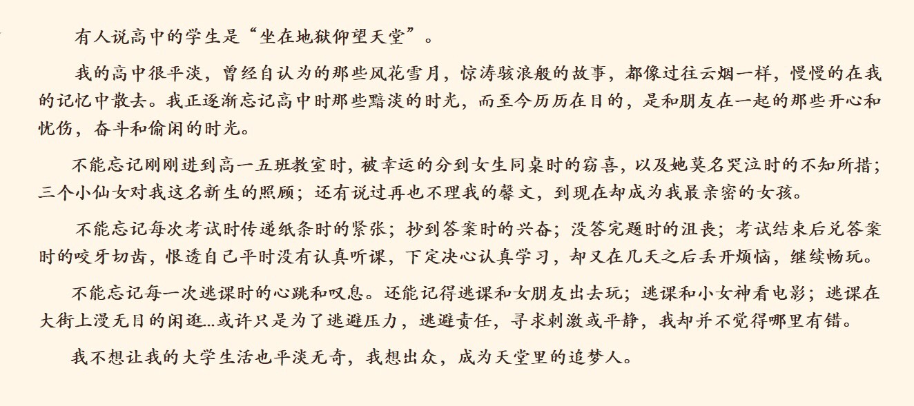 真正寫出漂亮的字體已經(jīng)是高三,是我抽時(shí)間練習(xí)寫字帖練的。
