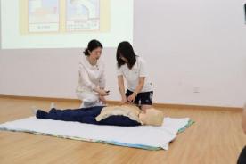 培訓結束后,醫(yī)護人員組織師生進行CPR實操演練。在醫(yī)護人員專業(yè)示范和“一對一”指導下,師生們借助人體模型,嚴格按照操作規(guī)范進行練習。醫(yī)護人員耐心細致地糾正按壓位置、深度、頻率以及人工呼吸手法等關鍵環(huán)節(jié),確保師生準確掌握操作要領。師生們積極參與,反復練習,現(xiàn)場學習氛圍熱烈。