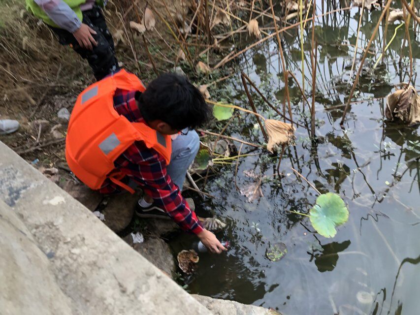 本次活動(dòng)分為三個(gè)小組,一組同學(xué)負(fù)責(zé)清理道路上的各種垃圾,二組、三組的同學(xué)負(fù)責(zé)采集水樣。首先出發(fā)的是一組的同學(xué)們,同學(xué)們手拿下發(fā)的垃圾袋仔細(xì)認(rèn)真地清理沿途的各種垃圾。彎腰去撿垃圾只是一個(gè)很小的動(dòng)作,可如果人人都獻(xiàn)一份力,后官湖將會(huì)干凈無比。