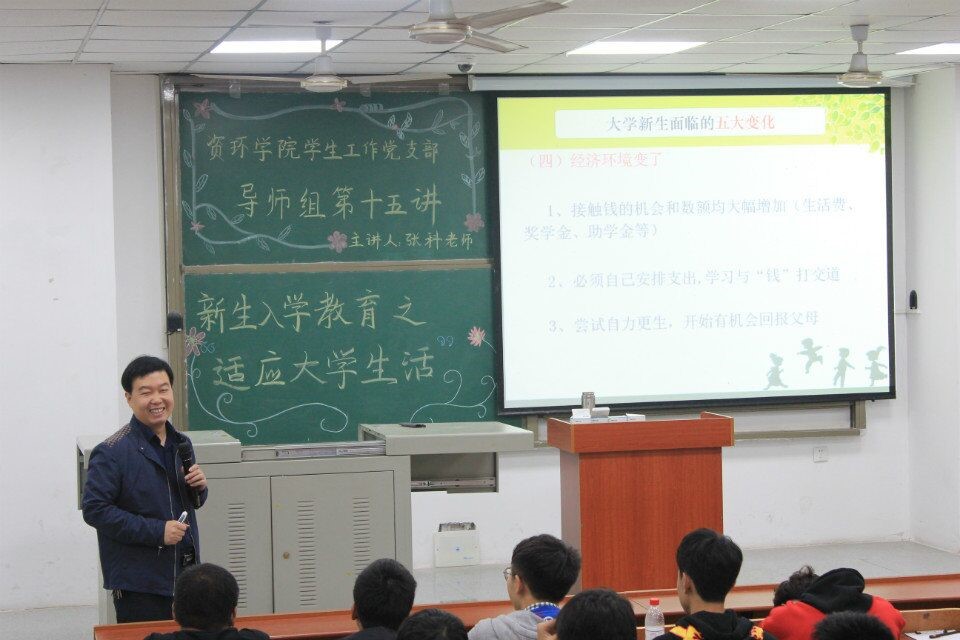 (通訊員 牛天意 史心宇 圖/ 孫琳 文 )為了讓學(xué)生們進(jìn)一步適應(yīng)大學(xué)生活和學(xué)習(xí),實現(xiàn)由中學(xué)生到大學(xué)生的角色轉(zhuǎn)變,10月24日晚7點,于B104,針對“新生入學(xué)教育之適應(yīng)大學(xué)生活”這一關(guān)鍵,黨委副書記張科老師為資環(huán)學(xué)院18級全體新生上好這一堂課。