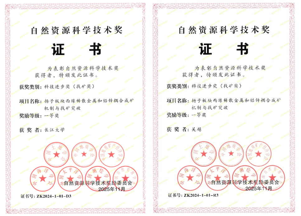 近日,自然資源部公布了2024年度自然資源科學(xué)技術(shù)獎(jiǎng)評(píng)選結(jié)果。由我院吳越教授團(tuán)隊(duì)參與完成的“揚(yáng)子板塊西緣稀散金屬和鉛鋅耦合成礦機(jī)制與找礦突破”項(xiàng)目,榮獲自然資源科技進(jìn)步獎(jiǎng)(找礦獎(jiǎng))一等獎(jiǎng)(排名第3)。