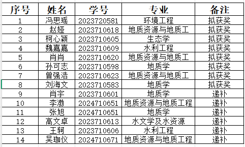 依據(jù)《長(zhǎng)江大學(xué)學(xué)生資助資金管理辦法(修訂)》(長(zhǎng)大校發(fā)〔2025〕112號(hào))文件及《長(zhǎng)江大學(xué)研究生國(guó)家獎(jiǎng)學(xué)金實(shí)施細(xì)則》的有關(guān)精神,我院認(rèn)真組織了2025年碩士研究生國(guó)家獎(jiǎng)學(xué)金評(píng)選工作,經(jīng)研究生個(gè)人申請(qǐng)、學(xué)院審核、評(píng)審答辯、學(xué)院研究生國(guó)家獎(jiǎng)學(xué)金評(píng)審委員會(huì)進(jìn)行材料審核和評(píng)審,擬推薦馮思瑤等8人為國(guó)家獎(jiǎng)學(xué)金獲獎(jiǎng)人選,現(xiàn)將我院2025年研究生國(guó)家獎(jiǎng)學(xué)金評(píng)審結(jié)果公示如下:(如有名額追加,按照評(píng)審?fù)扑]排名依次進(jìn)行遞補(bǔ))